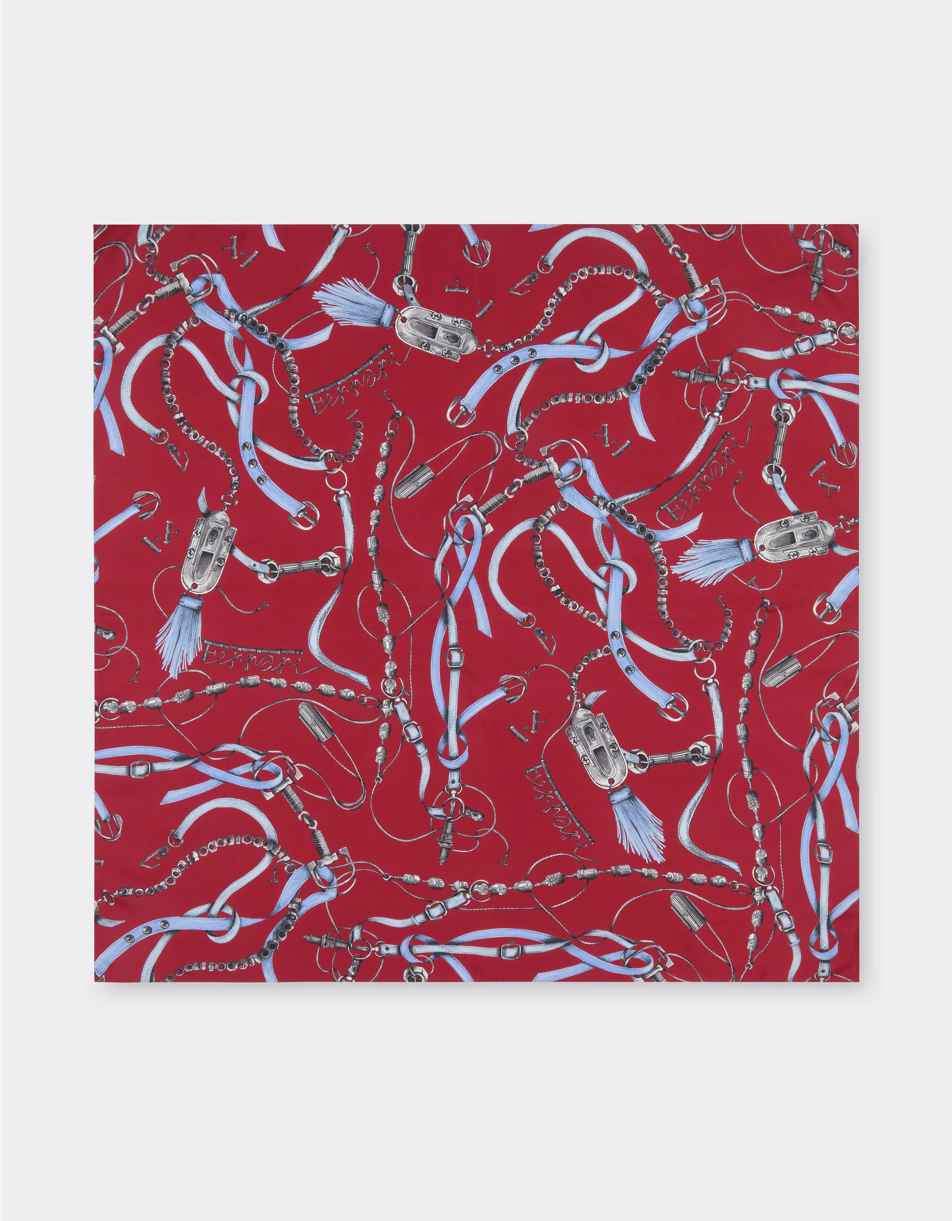 Exquisite silk twill foulard enhanced with the Ferrari Closet print, which reworks the signature elements of the Officina Ferrari workshop into a refined graphic motif. This versatile and large Made in Italy accessory lends itself to multiple style interpretations and can be tied around the neck, in the hair or attached to bags and other accessories. DETAILS - Ferrari Closet print - Finished with thin hem - Dimensions: 90 cm x 90 cm MATERIALS PR: SE-TE:100.0 Product Code: 50613f157