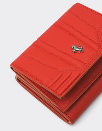 Rectangular wallet in textured leather distinguished by the iconic embossed livery motif created through a high-frequency printing technique. Blending style and functionality, this foldable item features one main compartment, multiple credit card slots and external zip pocket – to keep your belongings impeccable and perfectly organised. This Italian-made accessory is completed with an interior in nappa leather and moire fabric, the Prancing Horse emblem on the front panel and distinguishing Chassis finish on all metal details. DETAILS - Made in Italy - High-frequency print - External zip pocket - One banknote compartment Seven credit card slots - Tone-on-tone edging and stitching - Interior in nappa leather and moire fabric - Metal Prancing Horse detail - Dimensions: 11 cm (H) x 8.5 cm (W) x 1.5 cm (D)Color:Rosso Dino MATERIALS 100% COW LEATHER Product Code: 20359f112