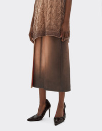 A play of carved fringes enlivens these leather pumps with a distinctive wet-glossy effect. The refined craftsmanship gives depth to the surface, recalling the iconic language of the Nello bag and its evolution in the world of Ferrari footwear. The leather sole with non-slip insert and covered high heel complete this Made in Italy model with a bold and sensual character. DETAILS - Pointed upper with fringed detailing - Nappa leather lining - Patch on insole with fabric label featuring Ferrari logo - Leather sole with non-slip TPU injection - Metal Prancing Horse rivet with chrome finish on sole - 10.5 cm heel, covered in leather MATERIALS PR: GOAT LEATHER-TE:100.0 Product Code: 51308f38