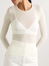 EDITORS'NOTES The close fit of FFORME's 'Ames' T-shirt ensures a perfect tuck every time. It's cut from smooth and lightweight stretch-silk and also comes in navy, too. SIZE & FIT - Fits true to size, take your normal size - Designed for a close fit - Lightweight, stretchy fabric - Model is 177cm/ 5'10" and is wearing a size XSmall DETAILS & CARE - Off-white stretch-silk - Slips on - 85% silk, 15% elastane - Dry clean