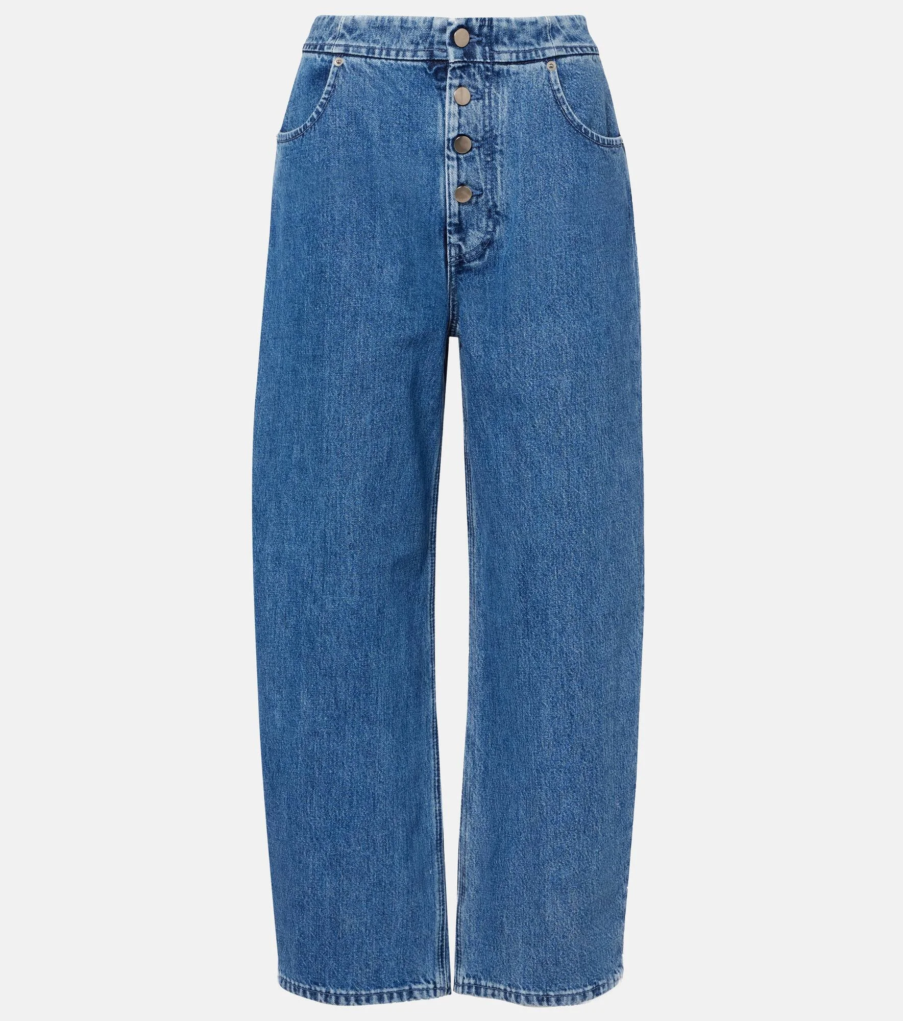Fforme's barrel-leg jeans are made in Italy with slant and back pockets. Designed with a buttoned placket, the sculptural silhouette reflects the brand’s precise approach to proportion and everyday structure. Product Details - Material: 100% cotton - Care instructions: machine wash at 30 degrees - Made in Italy - Designer color name: Denim Blue - Item color: blue - Lining: 65% polyester, 35% cotton - Closure: buttoned placket - Pockets: slant pockets, back pockets - Item number: P01052622 Size & Fit - True to size - Non-stretchy fabric - Tapered leg - Mid-rise - The model seen in the picture is 178cm-5'10" and wearing a size IT 40