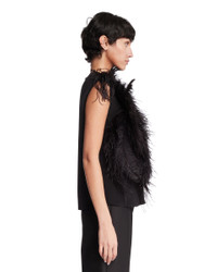 Fforme Black Manon Top. Black silk cady, tone-on-tone feather detailing on the front panel, sleeveless, straight hem, relaxed fit. Anis is 178 cm and she is wearing size 38. DETAILS Model: FF00648S12515001 Composition: 100% Silk; Lining: 73% Acetate, 27% Silk; Details; 100% Feathers Made in: ITALY Season: SS26