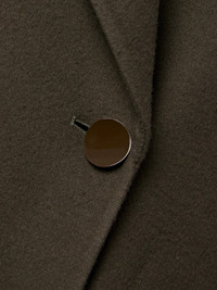 FFORME Creative Director Paul Helbers wants its outerwear to feel cozy and enveloping - this 'Carlson' coat is designed with a dramatic shawl collar that can be pulled up to further block out the cold. It's tailored from army-green wool in a double-breasted profile and fastens with a pair of glossy buttons.