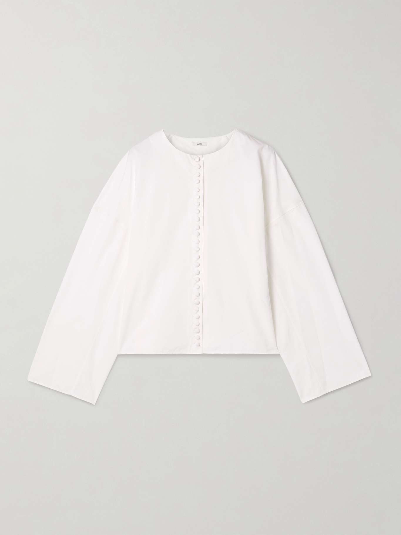 EDITORS'NOTES It's the distinctive cuts that make FFORME's elevated essentials feel special. This 'Fish' shirt is made from crisp cotton-poplin in a boxy shape enhanced by generously dropped shoulders and is finished with a row of tonal, covered buttons. SIZE & FIT - Fits true to size, take your normal size - Intended for a slightly loose fit - Lightweight, non-stretchy fabric - Model is 180cm/ 5'11" and is wearing a size Small DETAILS & CARE - White cotton-poplin - Button fastenings along front - 100% cotton - Dry clean