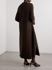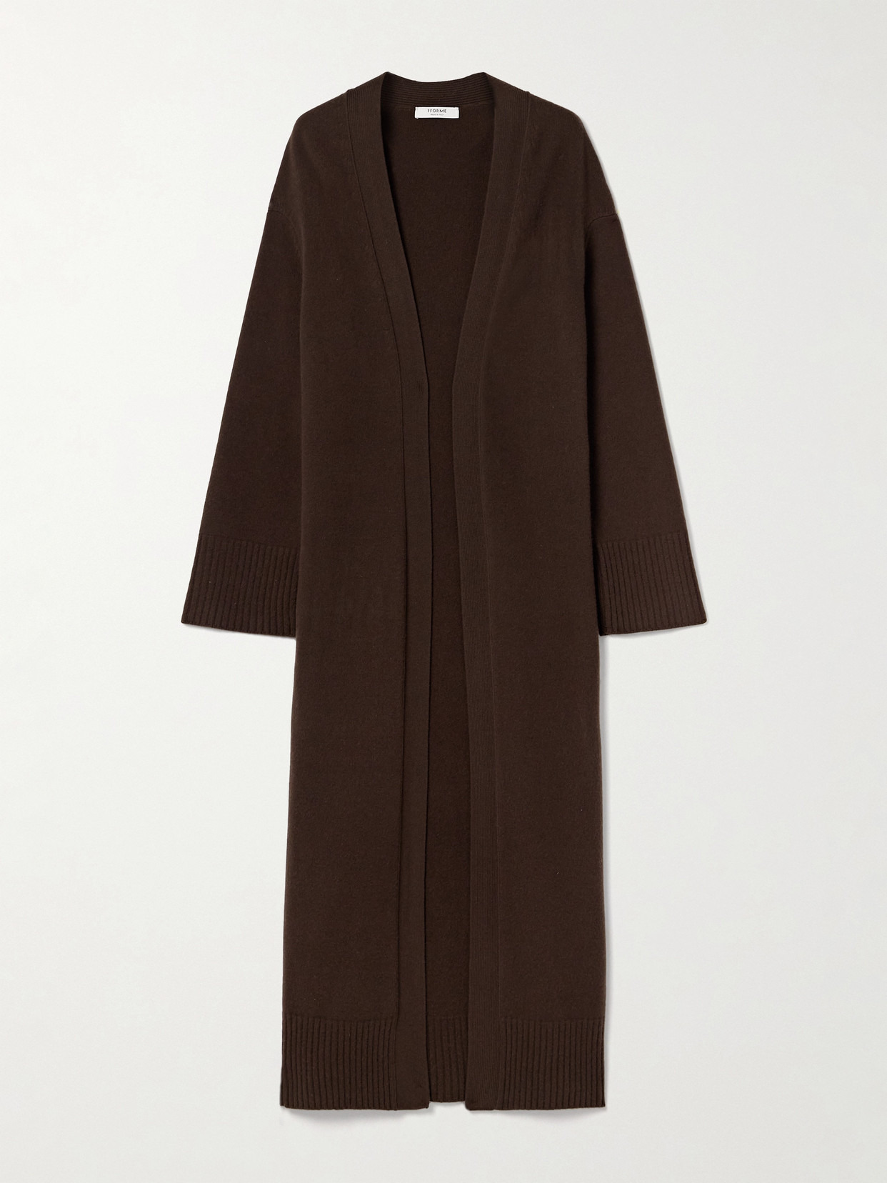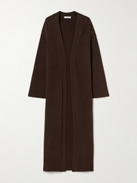 FFORME's 'Gwen' cardigan is knitted from the same wool and cashmere-blend as the matching 'Ainsley' dress, creating a cozy set when paired together. The rich 'Coffee' shade is endlessly versatile, while the long, relaxed silhouette allows for easy layering.