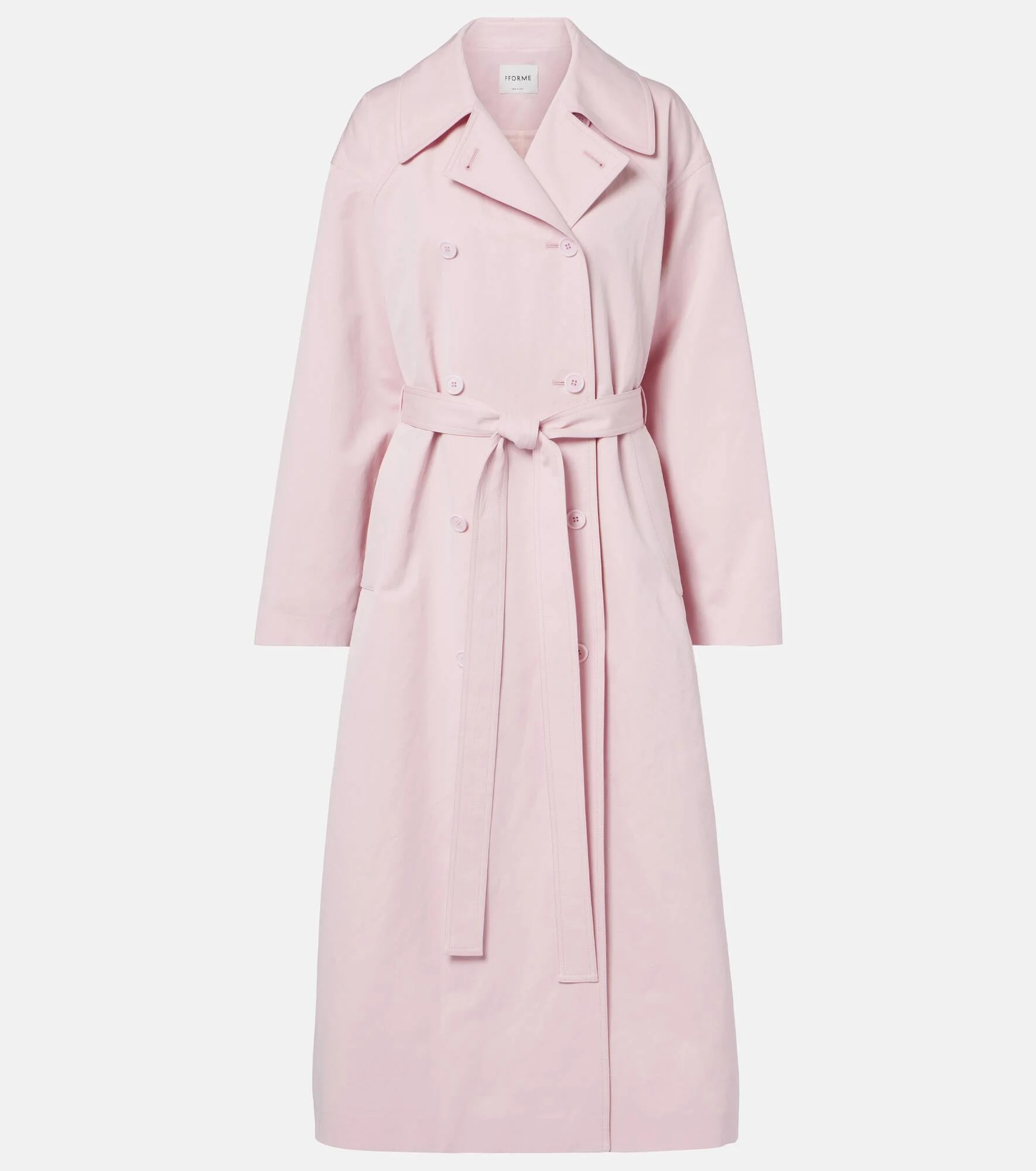 Minimal and exquisitely discreet, Fforme's designs radiate understated refinement. The Leonie trench coat is crafted from a powdered cotton blend and showcases a double-breasted design with dropped shoulders, creating a modern relaxed silhouette. Product Details - Material: 63% cotton, 37% paper - Care instructions: dry clean - Made in Italy - Designer color name: Orchid - Item color: pink - Lining: 100% cupro - Closure: double-breasted buttoned front - Detachable belt - Pockets: welt pockets, internal pocket - Long vent - Item number: P01123755 Size & Fit - Fits large to size - we recommend trying one size smaller - Dropped shoulders - Loose fit, comes with belt - Non-stretchy fabric - The model seen in the picture is 178cm-5'10" and wearing a size IT 38