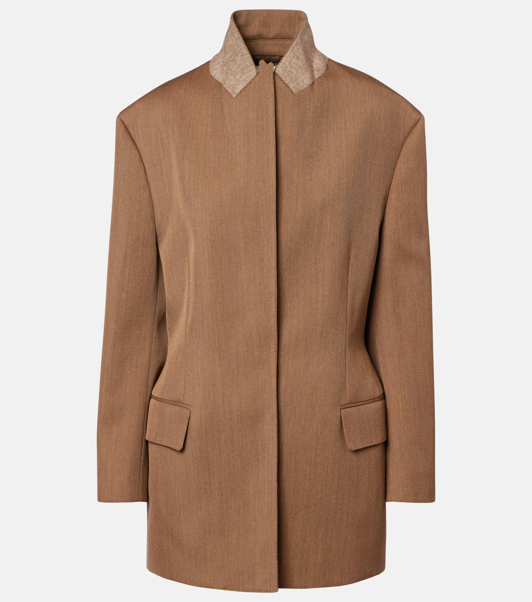 Embrace refined elegance with the Malina blazer from Fforme. Crafted from virgin wool, the design features a cinched waist, snap-buttoned front closure, and shoulder pads for added structure. Product Details - Material: 100% virgin wool - Care instructions: dry clean - Made in Italy - Designer color name: Camel Melange - Item color: beige - Lining: 100% cupro - Closure: snap-buttoned front - Pockets: flap pockets - Cuff: four buttons - Vent: single - Item number: P01086107 Size & Fit - Fits large to size - we recommend trying one size smaller - Shoulder pad inserts - Cinched waist - Non-stretchy fabric - Falls below the hip - The model seen in the picture is 178cm-5'10" and wearing a size IT 38