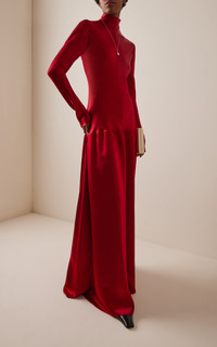 PRODUCT DETAILS - Slim fit, high neckline and long sleeve, drop waist silhouette - Zip Closure Through Back - Unlined - Composition: 100% Viscose - Color: ivory - Dry Clean Only - Fall-Winter '25