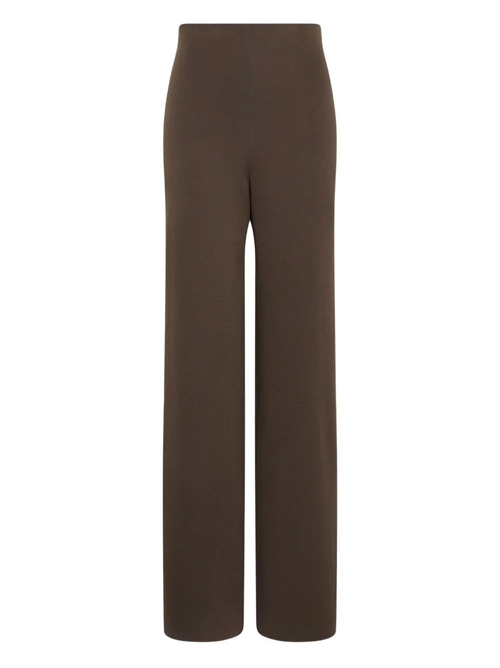 Perse trousers Highlights - Chocolate brown - Slip-on style - High-waisted - Straight leg - Fine knit Made in Italy Composition Wool 66%, Cotton 21%, Fabric 13%