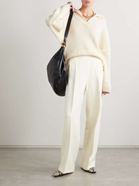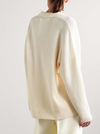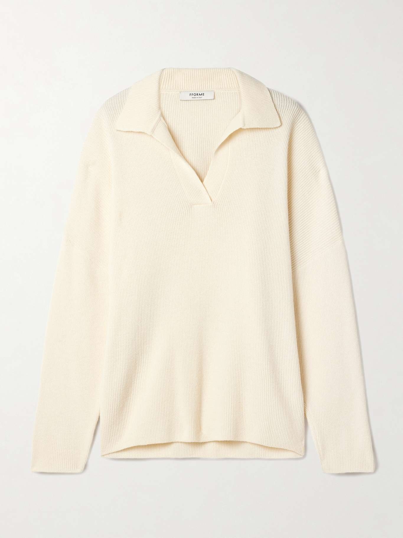 Louise ribbed merino wool and cashmere-blend polo sweater Ivory