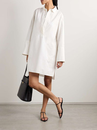 EDITORS'NOTES FFORME draws inspiration from architecture, which is reflected in the sleek cuts and precise, minimalist lines of each design. This ‘River’ tunic is cut for a relaxed fit from cotton-poplin and has an open placket and oversized cuffs. Style yours solo or with pants. SIZE & FIT - Fits true to size, take your normal size - Intended for a slightly loose fit - Lightweight, non-stretchy fabric - Model is 180cm/ 5'11" and is wearing a size Small DETAILS & CARE - White cotton-poplin - Slips on - 100% cotton - Hand wash