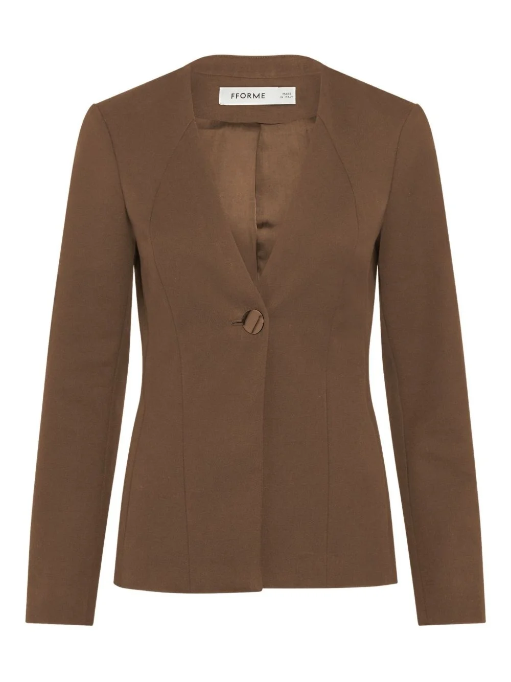 Toshi jacket Highlights - Taupe brown - Front button fastening - Collarless - V-neck - Long sleeves Made in Italy Composition Cotton 57%, Wool 43% Washing instructions Read Manufacturer Guidelines
