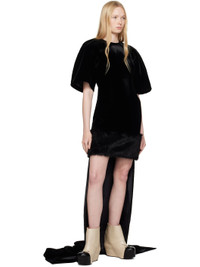 Cotton velvet minidress. · Round neck · Faux-fur trim at hem and train · Pinched seam at sleeves · Full silk satin lining Supplier color: Black Body: 100% cotton. Trim: 100% polyester. Lining: 100% silk. Made in Moldova 251953F052000