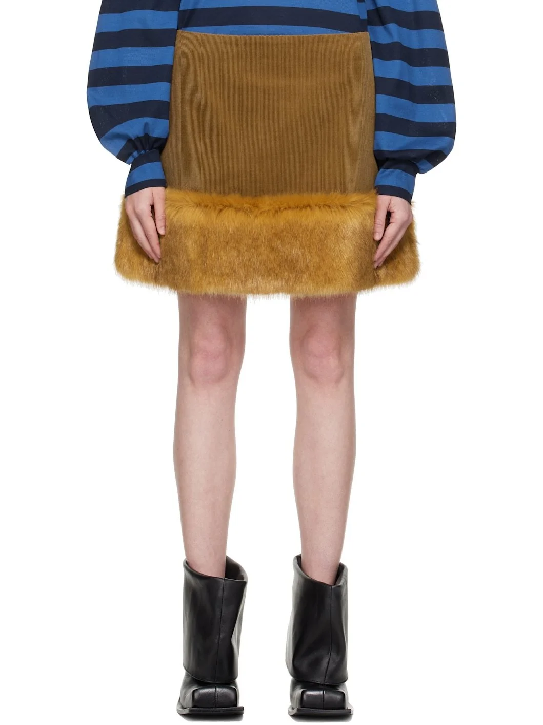 Cotton corduroy miniskirt. · Faux-fur trim at hem · Zip closure at back · Full viscose twill lining Supplier color: Fox orange Body: 100% cotton. Trim: 100% polyester. Lining: 100% viscose. Made in Moldova 251953F090000