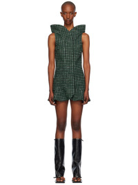 Cotton- and polyester-blend tweed minidress. Houndstooth pattern throughout. · Wrap construction · Extended stand collar · Flared hem · Full viscose twill lining Supplier color: Green/Black checked Body: 60% cotton, 36% polyester, 4% polyamide. Lining: 100% viscose. Made in Moldova 242953F052001