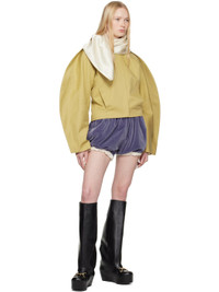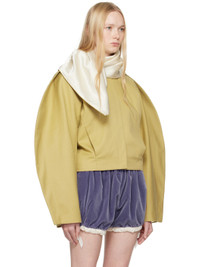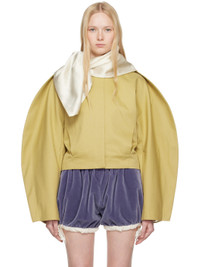 Cotton twill jacket. · Detachable twill scarf at round neck · Hook-eye closure · Seam pockets · Pinched seam at balloon sleeves · Full satin lining Supplier color: Camel Body: 100% cotton. Lining: 57% acetate, 43% ramie. Made in Moldova 251953F063002