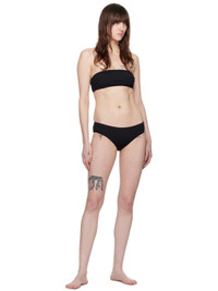 Stretch recycled polyester ribbed jersey bandeau-style bikini top. · Straight neck · Tab-slot fastening at back · Full stretch jersey lining Supplier color: Black Body: 94% recycled polyester, 6% elastane. Lining: 73% polyamide, 27% elastane. Made in Portugal 241072F105000