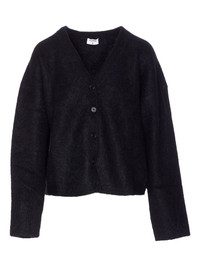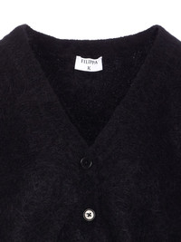 button v-neck cardigan Highlights - Black - Frontal button closure - V-neck - Long sleeves Imported Composition Alpaca 54%, Polyamide 31%, Wool 13%, Lycra 2% Washing instructions Read Manufacturer Guidelines