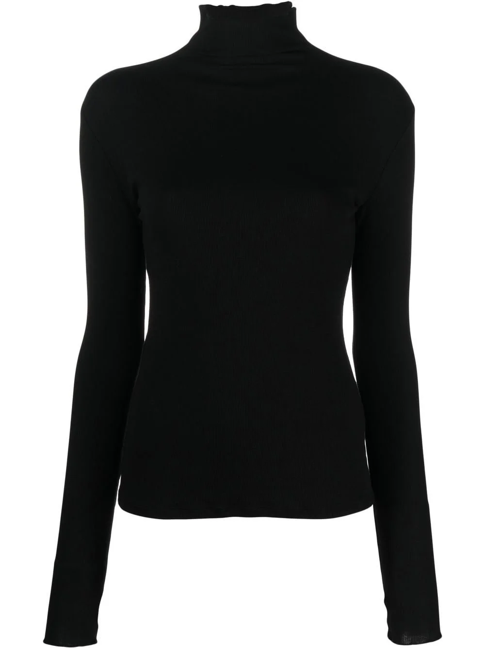 ribbed-knit roll-neck top Highlights - Jet black - Lyocell blend - Ribbed knit - Roll neck - Long sleeves - Straight hem Imported Composition Lyocell 64%, Cotton 32%, Spandex/Elastane 4% SIZE & FIT Measurement SLEEVE LENGTH 26.77 in(68 cm) LENGTH 24.4 in(62 cm) BUST 34.64 in(88 cm) Shoulder Width 16.14 in(41 cm) Washing instructions Machine Wash