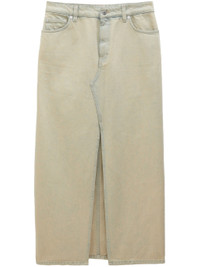 beige organic cotton blend denim applique logo belt loops front slit front button fastening classic five pockets mid-length straight hem Size & Fit Model Measurements: Bust: 0cm Height: 0cm Hips: 0cm Waist: 0cm Fabric and Care Designer Style ID: 30524 Designer Colour: 0053 Beige Overdyed Composition: Cotton 50%, Organic cotton 50% Washing instructions: Machine Wash Made in Italy