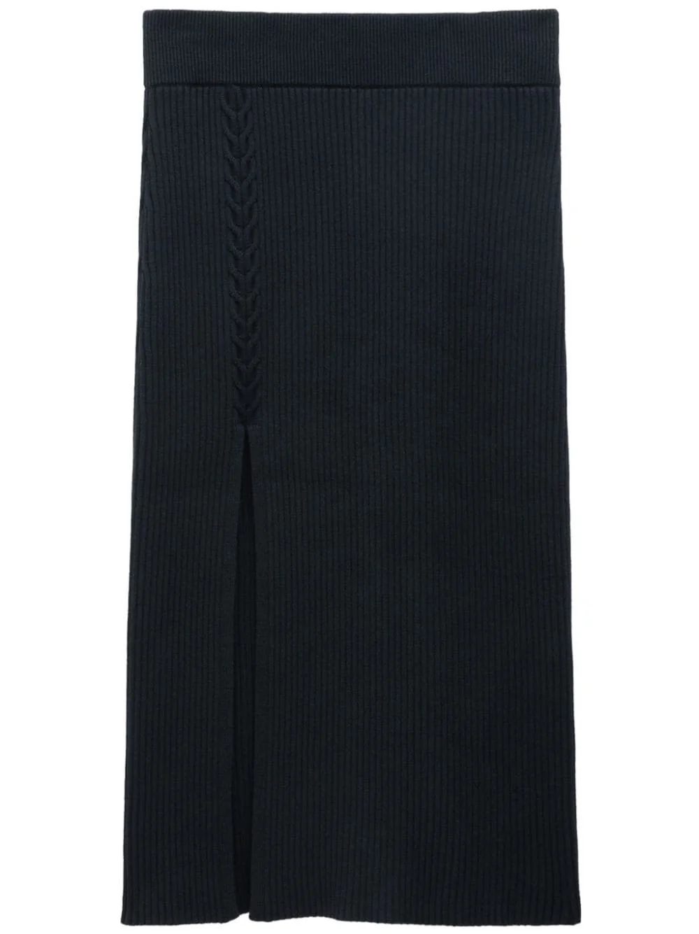front-slit ribbed midi skirt Highlights - Black - Organic cotton - Ribbed knit - Front slit - Elasticated waistband - Mid-length - Straight hem Imported Composition Organic Cotton 100% Washing instructions Machine Wash