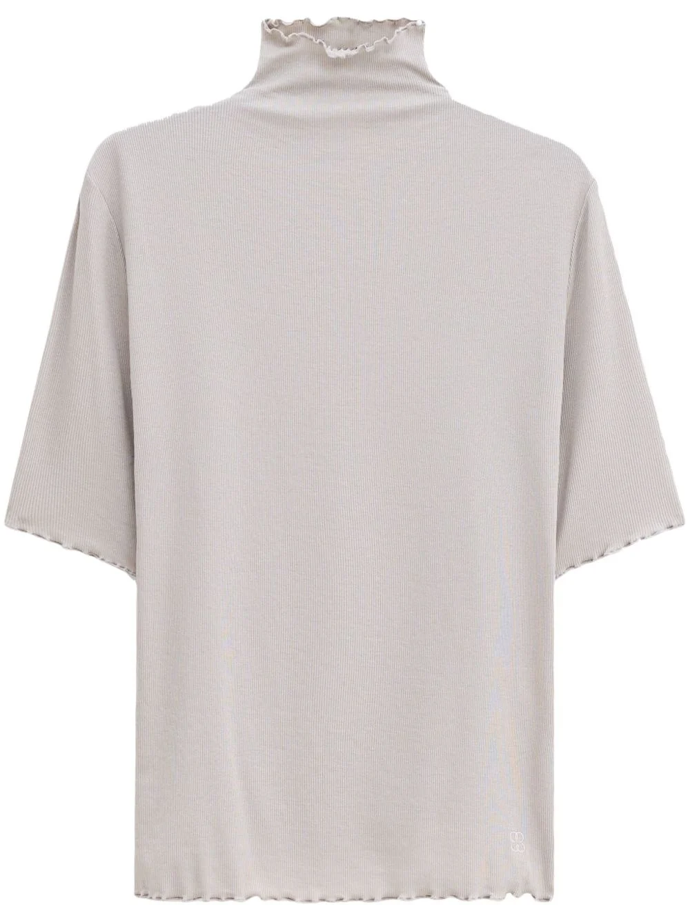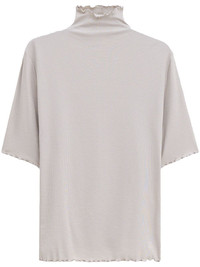 high-neck T-shirt Highlights - Light grey - Tencel™ lyocell blend - Lightweight jersey - Ribbed detailing - Mock neck - Short sleeves - Lettuce hem Imported Composition TENCEL™ Lyocell (LENZING) 64%, Organic Cotton 36%