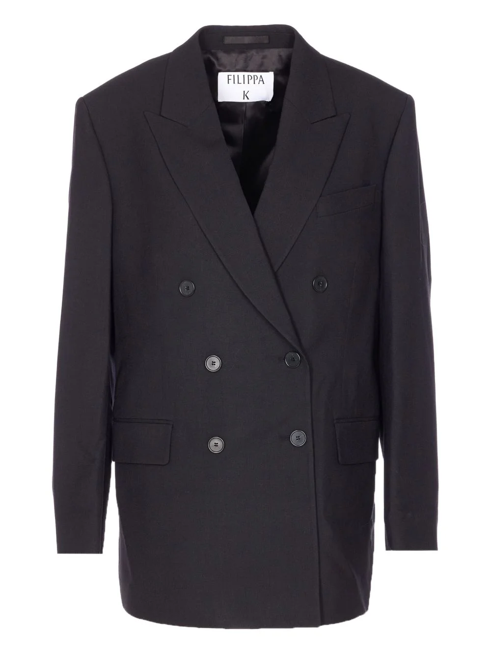 double-breasted blazer Highlights - Black - Double-breasted closure - V-neck - Reverse detail - Long sleeves - Buttons cuffs - Back split - Reinforced shoulders Imported Composition Lining: Polyester 54%, Viscose 46% Outer: Wool 70%, Polyester 30% Washing instructions Read Manufacturer Guidelines
