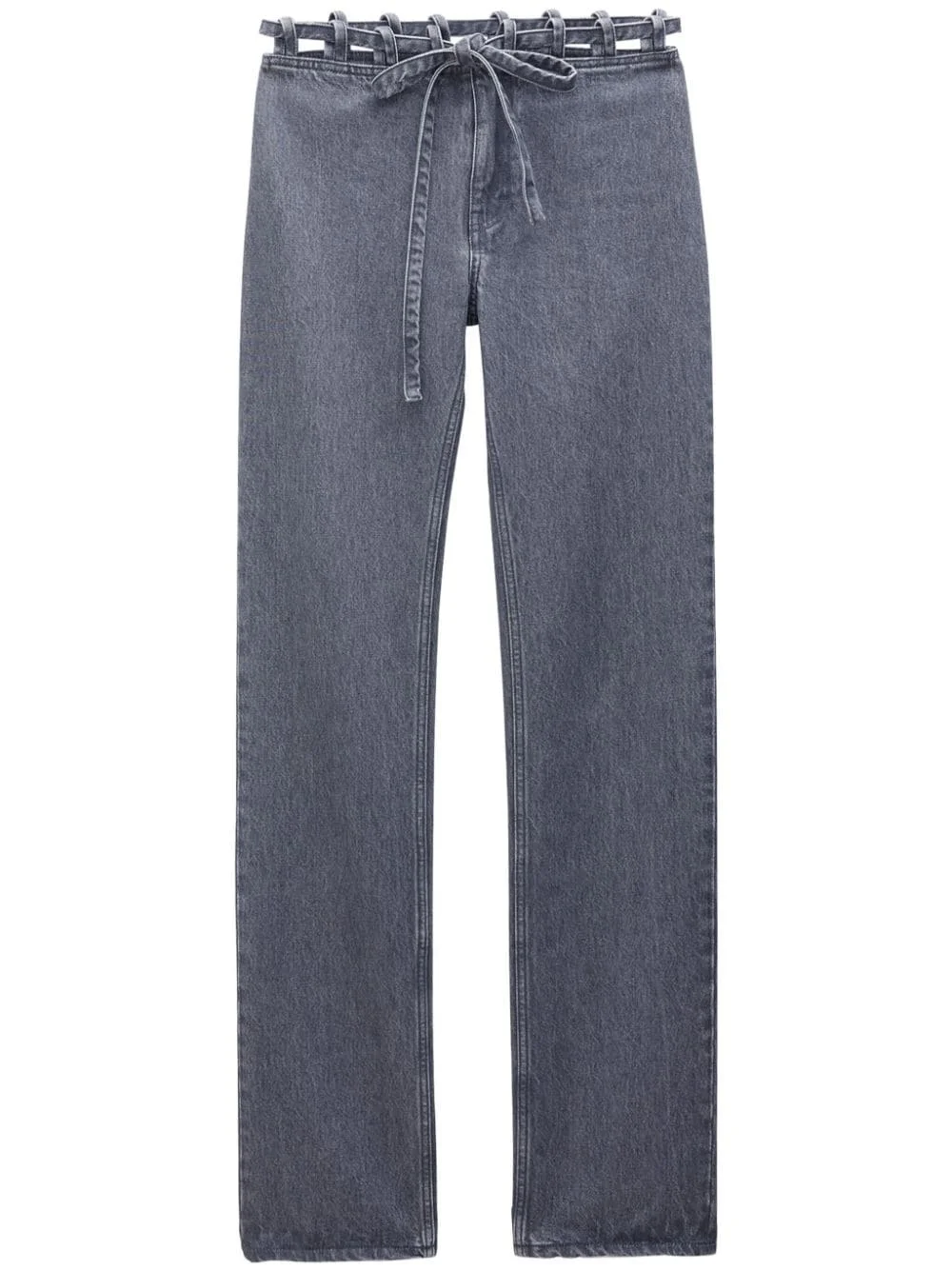 lace-waist straight-leg jeans Highlights - Grey - Organic cotton - Low-rise - Lace detailing - Front zip fastening - Two rear patch pockets - Embroidered logo to the rear - Straight leg - Extra-long length Made in Italy Composition Organic Cotton 100%