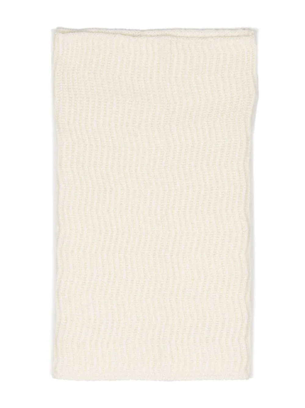 patterned-jacquard knitted scarf Highlights - Cream white - Alpaca wool-blend - Knitted construction - Patterned jacquard - Straight hem - Wraparound style Imported Composition Polyamide 44%, Alpaca Wool 34%, Wool 22% SIZE & FIT Measurement LENGTH 21.65 in(55 cm) WIDTH 13.77 in(35 cm) Washing instructions Hand Wash