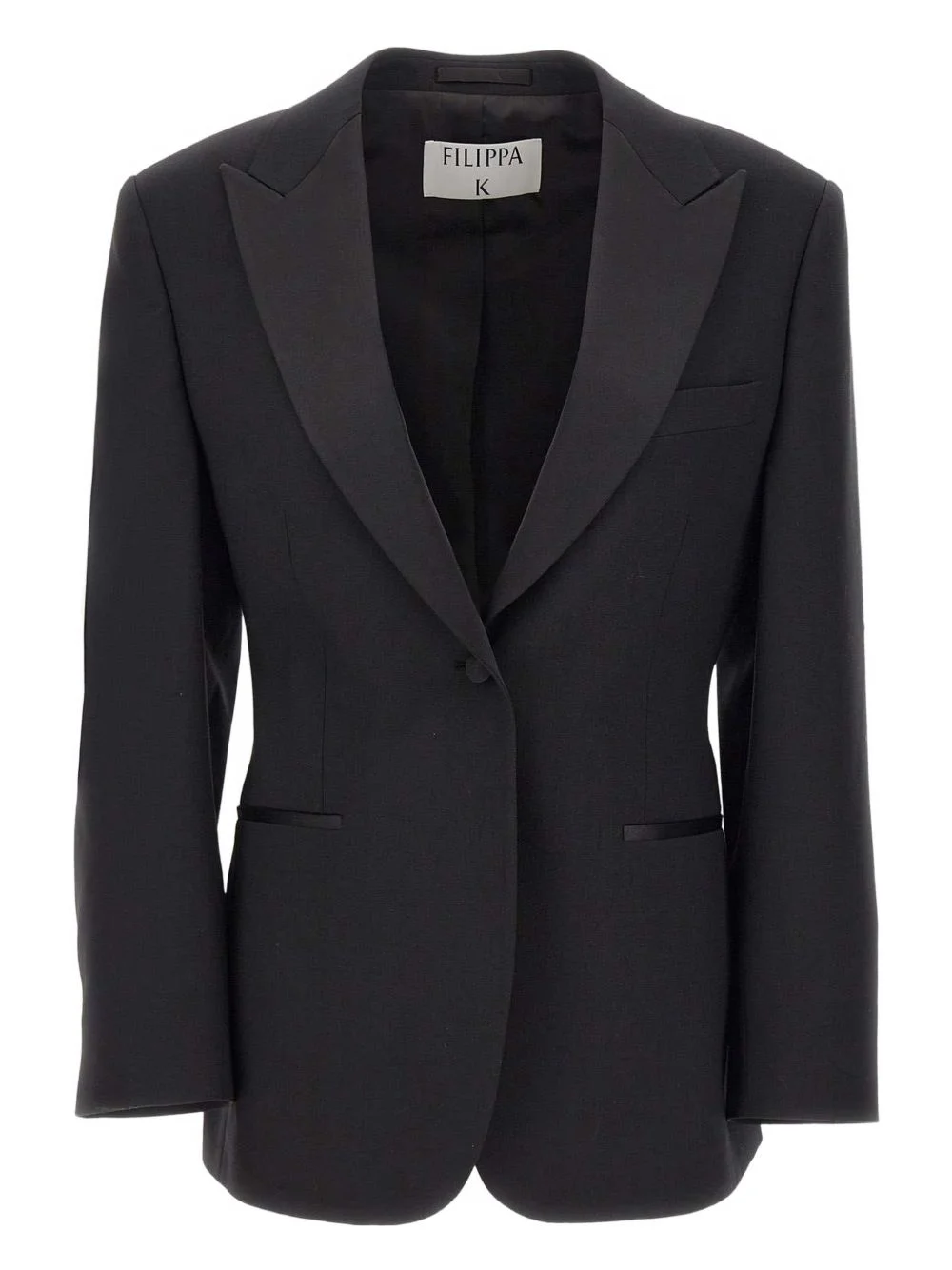 peaked-lapels blazer Highlights - Black - Satin details - Peak lapels - Front welt pockets - Single-button closure Imported Composition Wool 70%, Polyester 30% Washing instructions Read Manufacturer Guidelines