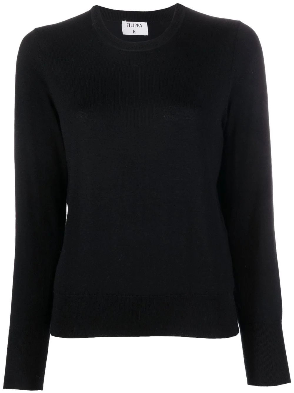 round-neck sweater A simple yet beautiful black jumper by Filippa K. Made from RWS wool in fine knit, with a crew neck, long sleeves and a straight hem. Imported Composition RWS Wool 100% SIZE & FIT Model measurements Height 5 ft 9 in(1.75 m) Bust/Chest 32.67 in(83 cm) Hips 36.22 in(92 cm) Waist 24.8 in(63 cm) FittingInformation This piece fits true to size. We recommend you get your regular size Cut for a relaxed fit Made with a mid-weight fabric Washing instructions Hand Wash