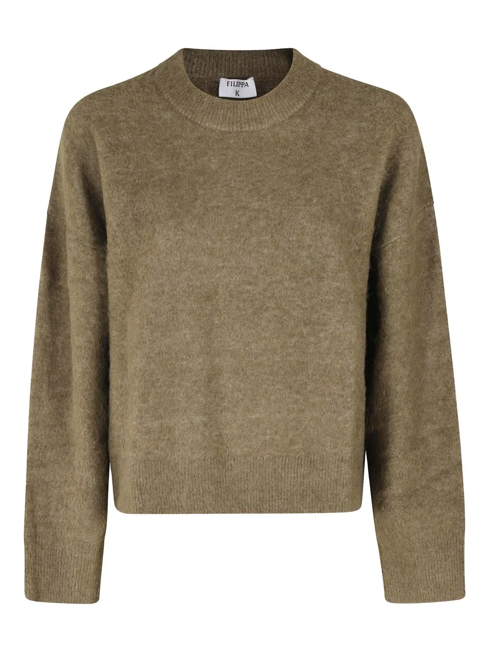 round-neck sweater Highlights - Green - Round neck - Long sleeves - Ribbed hem - Ribbed cuffs Imported Composition Alpaca Wool 54%, Recycled Polyamide 31%, RWS Wool 13%, Elastane 2% Washing instructions Hand Wash