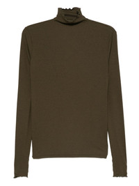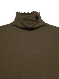 ruffled high-neck top Highlights - Dark khaki green - High neck - Ruffled neckline - Long sleeves - Ruffled cuffs - Ribbed texture Imported Composition Lyocell 64%, Cotton 32%, Elastane 4% Washing instructions Machine Wash