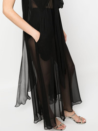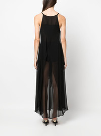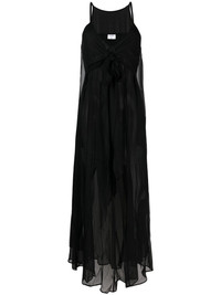 semi-sheer silk slip dress Highlights - Black - Silk - Semi-sheer construction - Knot detailing - V-neck - Spaghetti straps - Sleeveless - Two side slit pockets - Flared skirt - Ankle-length Imported Composition Silk 100% SIZE & FIT Model measurements Height 5 ft 11 in(1.8 m) Bust/Chest 31.49 in(80 cm) Hips 36.22 in(92 cm) Waist 25.59 in(65 cm) FittingInformation Designed to be unstructured, offering a loose fit throughout Made from a lightweight non-stretch fabric This piece fits true to size – take your usual size
