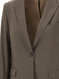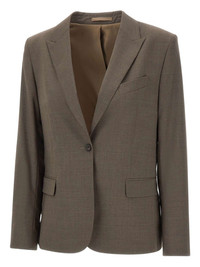 single-button blazer Highlights - Brown - Peak lapels - Single-button closure - Front flap pockets - Buttoned cuffs - Centre back vent Imported Composition Lining: Polyester 54%, Viscose 46% Outer: Wool 98%, Spandex/Elastane 2% Washing instructions Dry Clean Only