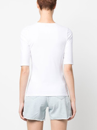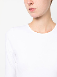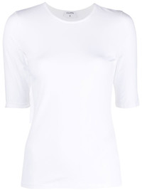 round-neck half-sleeve T-shirt Highlights - Cloud white - Organic cotton blend - Stretch organic cotton - Round neck - Half-length sleeves - Straight hem Imported Composition Organic Cotton 90%, Elastane 10% SIZE & FIT Model measurements Height 5 ft 11 in(1.8 m) Bust/Chest 31.49 in(80 cm) Hips 36.41 in(92.5 cm) Waist 25.59 in(65 cm) FittingInformation This piece fits true to size. We recommend you get your regular size Cut for a close fit Made with a lightweight stretch fabric