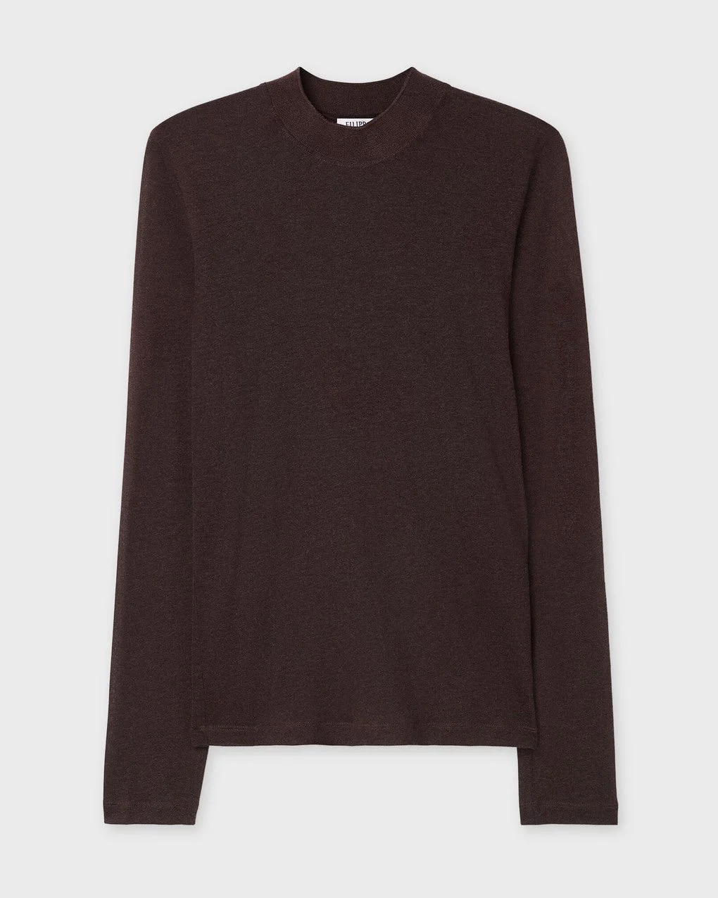 Lyocell Cashmere Mock Neck Top from Filippa K. A slim-fit mock neck top in a lightweight, sheer jersey made from a lyocell and cashmere blend with a soft texture. Size and Fit - Fits true to size, choose your usual size - Modellen ar 176 cm lang och bar storlek S Specification - Article number - ID: 176848-083 - Brand: Filippa K - Color: Brown - Washing Instructions: Gentle wash - Made of: 90% Lyocell (Lenzing), 10% Cashmere