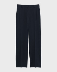 Hutton trousers from Filippa K. Elegant suit trousers in a loose fit. The trousers have straight legs and a normal high waist. Press fold both front and rear. The trousers are made of a material that does not wrinkle or shrink. Loops in the waistband. The trousers have two front pockets and two back pockets. Closes at the front with a zipper, button and hook. Size and Fit - Fits true to size, choose your usual size - The model is 176 cm tall and is wearing size 36 Specification - Article number - ID: 170249-000 - Brand: Filippa K - Color: Black - Washing Instructions: Dry clean - Made of: 69% Triacetat, 31% Polyester