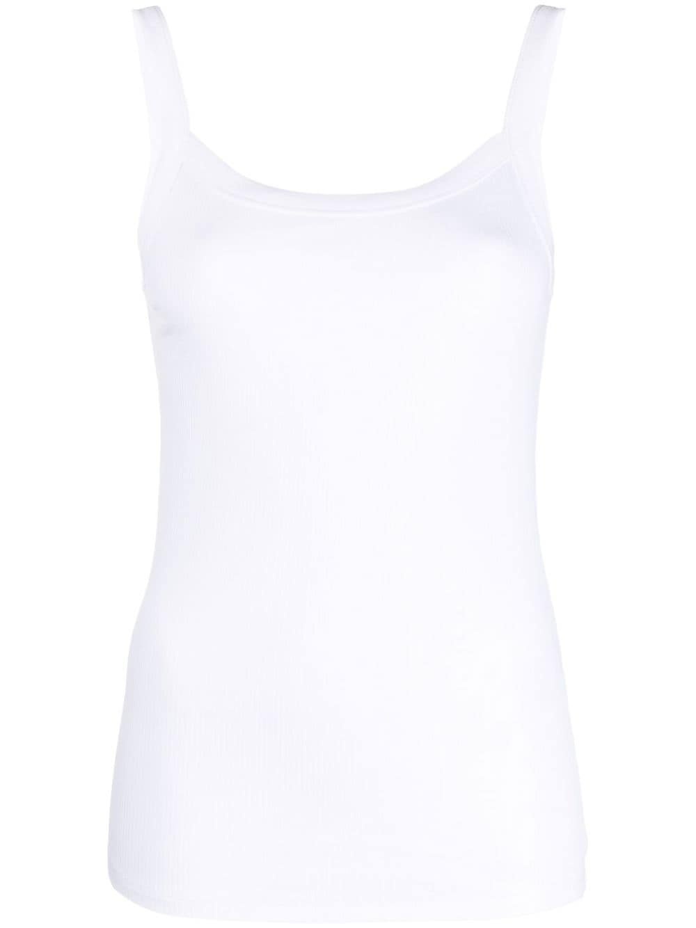 ribbed-knit vest top Highlights - White - Stretch organic cotton - Ribbed knit - Scoop neck - Sleeveless - Straight hem - This item is made from at least 50% organic materials. - Learn more about what makes a product conscious on our conscious criteria page Imported Composition Organic Cotton 95%, Elastane 5%
