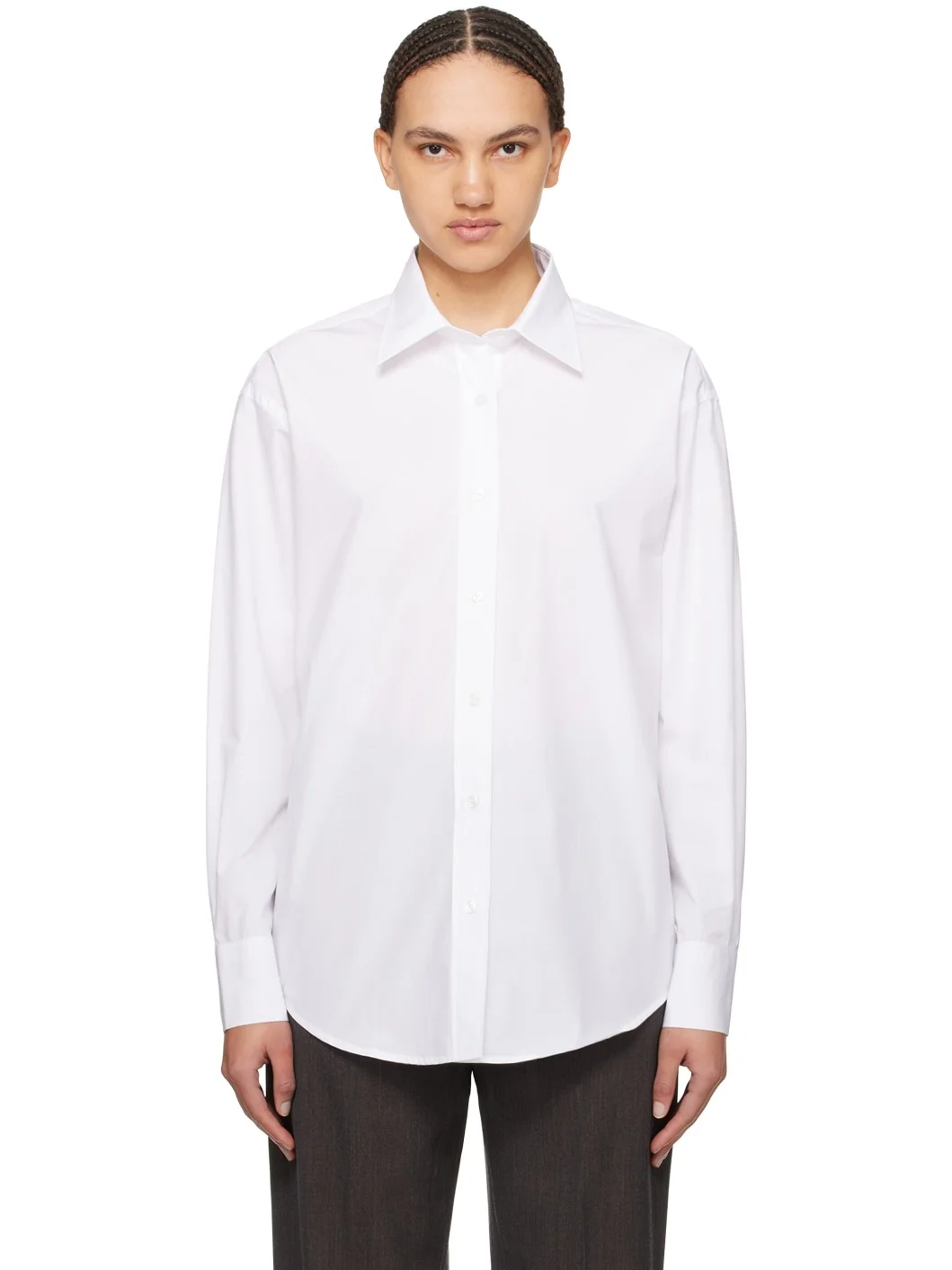 GOTS-certified organic cotton poplin shirt. · Spread collar · Button closure · Shirttail hem · Pleats at adjustable two-button barrel cuffs · Twin pleats at back yoke Supplier color: White 100% organic cotton. Made in Turkey 241072F109002