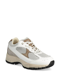 leather sneakers Highlights - White/beige - Calf leather - Front lace-up fastening - Round toe - Logo-embroidered tongue - Padded ankle - Branded insole - Embroidered logo to the rear - Rubber sole Imported Composition Leather 100%