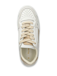 perforated-detailing trainers Highlights - White - Leather - Panelled design - Drawstring fastening - Perforated design - Mesh panelling - Padded ankle - Round toe - Rubber sole Imported Composition Leather 100%