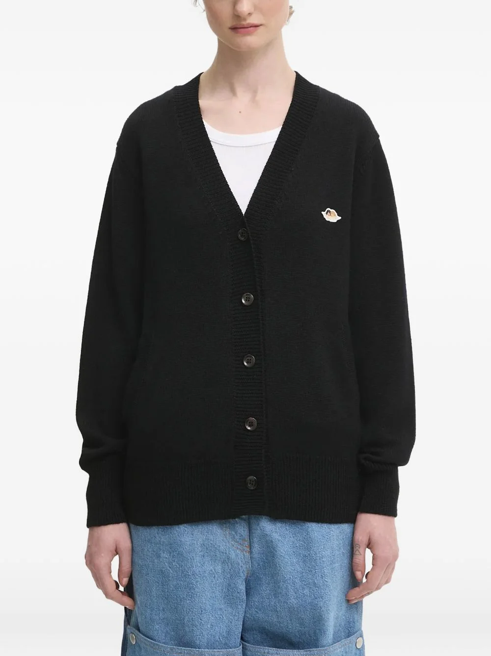 angels-patch button-fastening cardigan Highlights - Black - V-neck - Applique detailing - Button fastening - Long sleeves - Ribbed hem Made in Italy Composition Merino 100% Washing instructions Hand Wash