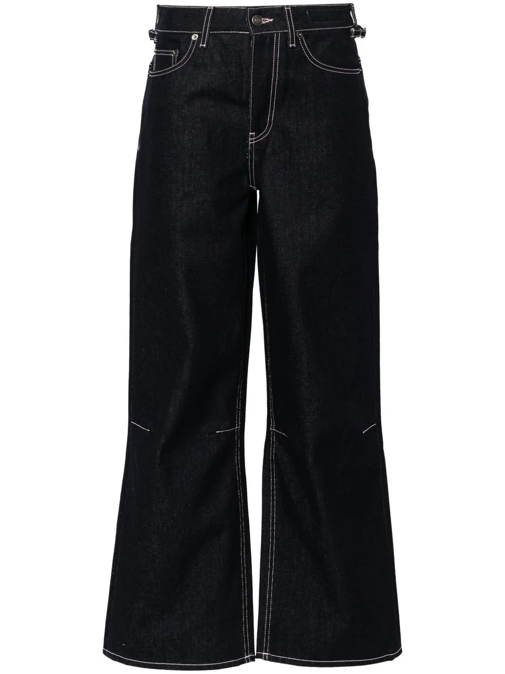 high-rise straight-leg jeans Highlights - Indigo blue - Organic cotton - Denim - Contrast stitching - High-waisted - Belt loops - Front button and zip fastening - Side buckle-straps fastening - Classic five pockets - Straight leg Made in Italy Composition Organic Cotton 100% SIZE & FIT Model measurements Height 5 ft 11 in(1.8 m) Bust/Chest 32.67 in(83 cm) Hips 36.22 in(92 cm) Waist 25.19 in(64 cm) FittingInformation Designed for a straight-leg fit, these jeans allow for a close fit at the waist and an unrestricted and comfortable fit over the leg Sturdy and hard-wearing, this denim piece offers no stretch This piece fits true to size – take your usual size