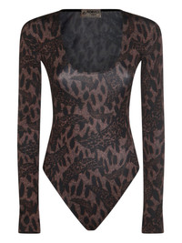 long-sleeved animal-print bodie Highlights - Brown - Animal print - Scoop neck - Long sleeves - Just a reminder that this piece must be tried on over your own garments. Made in Italy Composition Nylon 77%, Spandex/Elastane 23%