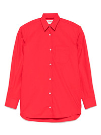 embroidered shoulder-padded shirt Highlights - Rose red - Front button fastening - Chest patch pocket - Buttoned cuffs - Curved hem Made in Italy Composition Cotton 97%, Elastane 3% Washing instructions Hand Wash