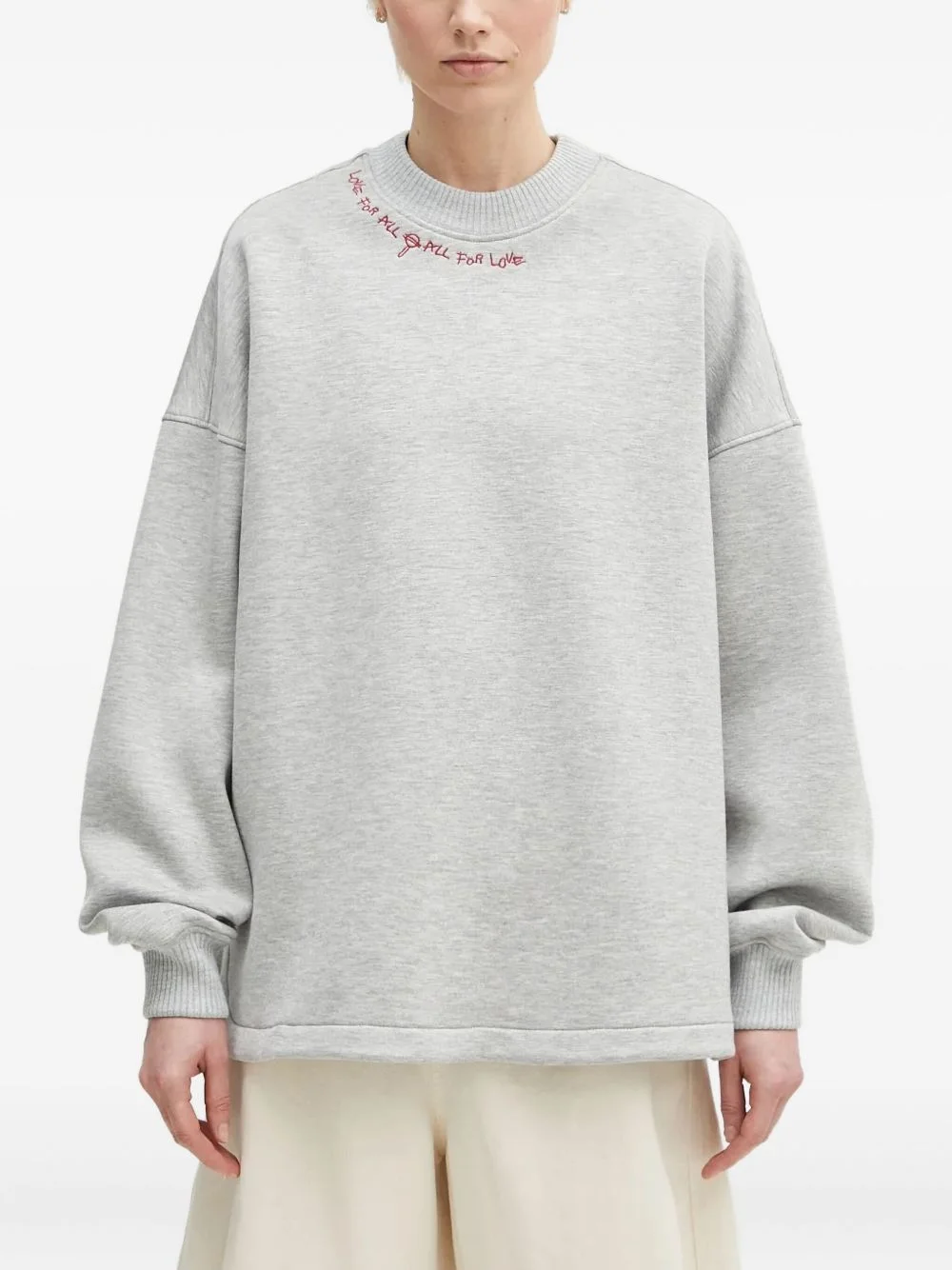 embroidered crew-neck sweatshirt Highlights - Grey - Embroidered neckline detail - Dropped shoulders - Ribbed cuffs - Curved hemline Made in Italy Composition Viscose 82%, Polyester 14%, Elastane 4% Washing instructions Read Manufacturer Guidelines