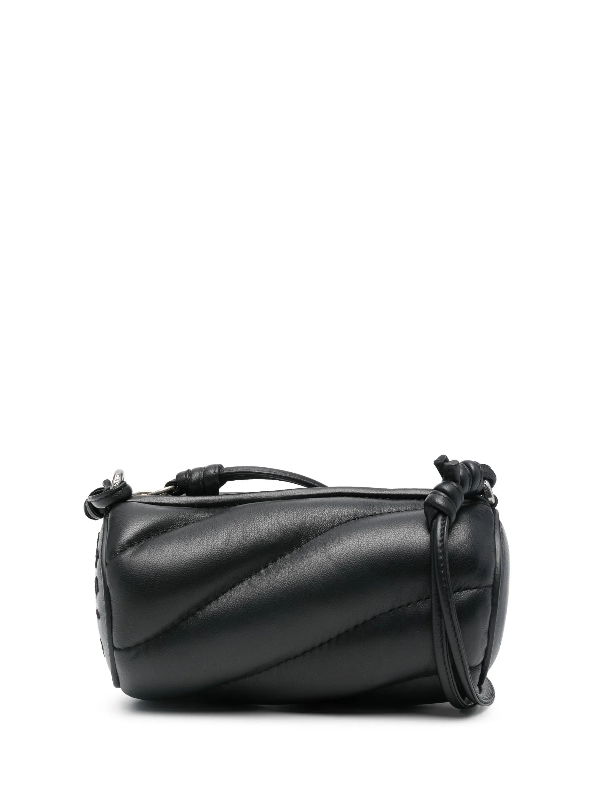 black calf leather smooth grain quilted top zip fastening adjustable shoulder strap knot detailing padded design embroidered logo to the side main compartment internal patch pocket full lining - depth: 6.0 centimetres, height: 7.0 centimetres, strap: 90.0 centimetres, width: 15.0 centimetres - Color: BLACK - Made in: Italy - Designer Style ID: U01FMASL005LE BLACK Composition and care Outer Composition Calf Leather: 100.0%