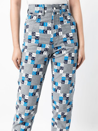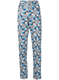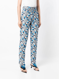 high-rise logo slim-fit jeans grey blue stretch-cotton all-over logo print slim cut button fastening belt loops classic five pockets Made in United Kingdom Composition Cotton 98%, Elastane 2% SIZE & FIT Model measurements Height 5 ft 10 in(1.78 m) Bust/Chest 28.34 in(72 cm) Hips 35.43 in(90 cm) Waist 23.62 in(60 cm) FittingInformation This piece fits true to size. We recommend you get your regular size Designed to be fitted at the waist, loose over the leg Made with a mid-weight stretch fabric