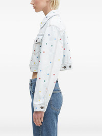 polka-dot denim jacket Highlights - Light blue - Polka dot pattern - Button fastening - Collared neckline - Long sleeves - Cropped hem Made in United Kingdom Composition Cotton 100% Washing instructions Read Manufacturer Guidelines